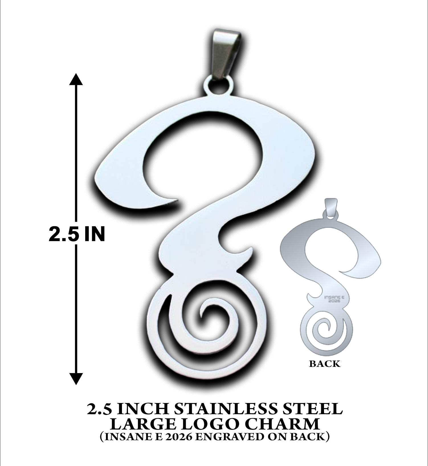 2.5 Inch LARGE Stainless Steel Insane E Question Mark Logo Charm with Bail with INSANE E 2026 Engraved on the Back!
